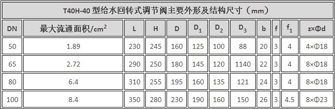 T40H型给水回转式调节阀主要性能参数