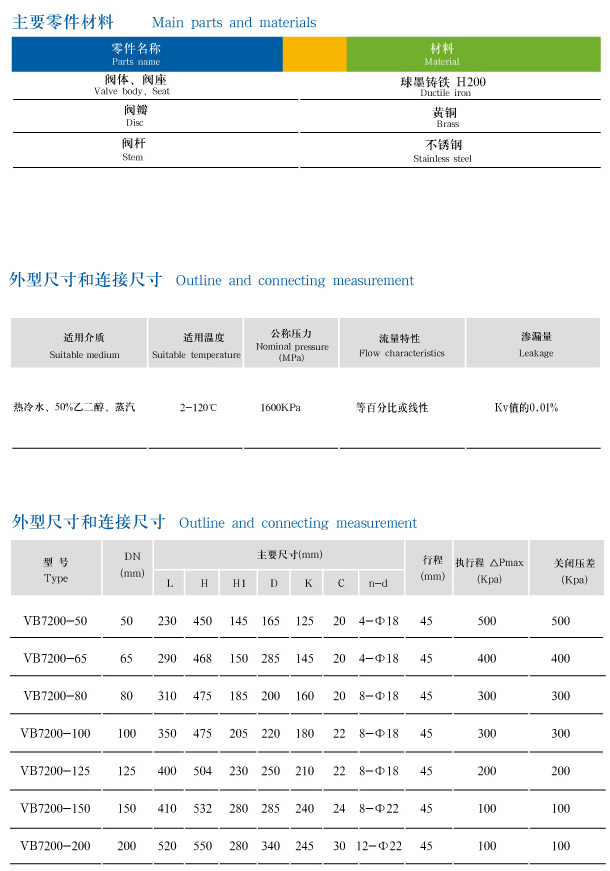 VB-7000系列电动调节阀包括阀体、阀盖、阀瓣、阀杆、轴封、密封件。
