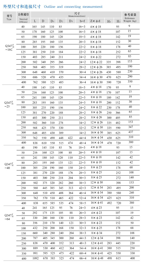 Q347F H-16C/25/40/64型铸钢固定球阀