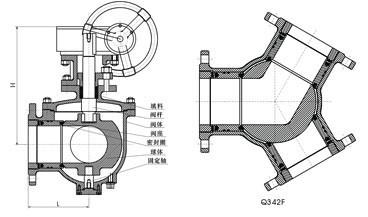 Y型三通球阀有相互成120°和两通孔成135°,根据需要可实现对介质流向切换两种工况。