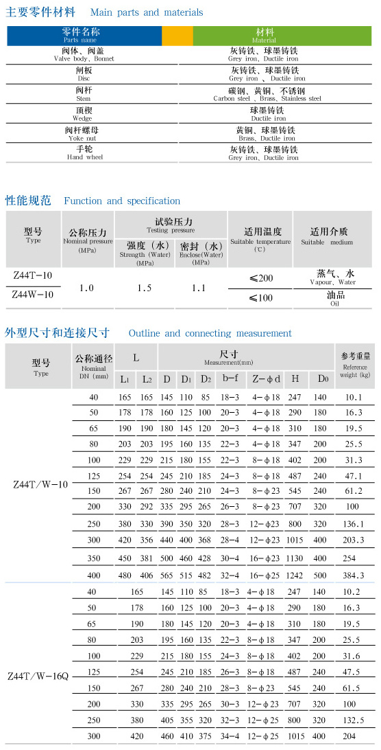Z44T/W-10/10Q/16Q型平行式双闸板闸阀