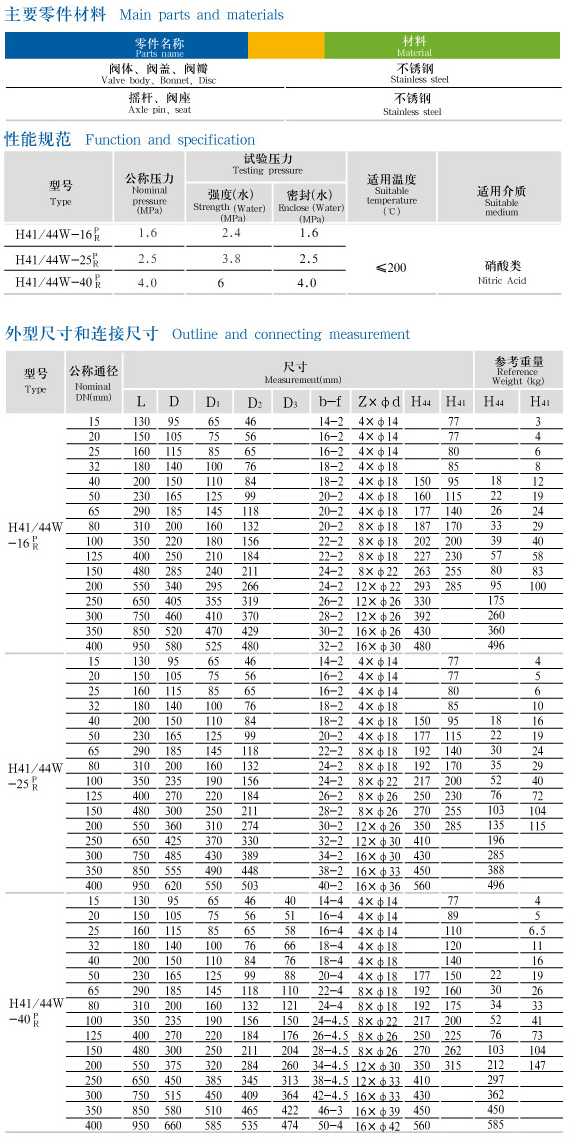 用途:本阀适用于硝酸类管路上作防止介质逆流的单向启闭用。